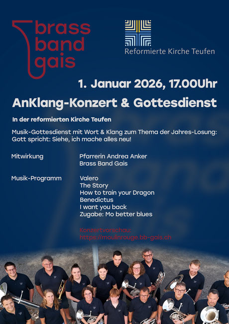 Die Brass Band Gais lädt ein zu einem spektakulären Jahres-Hauptevent ganz im Stil des berühmten Moulin Rouge. Mit einer mitreissenden Steptanzgruppe, farbenprächtiger Showatmosphäre und einem hochkarätigen Gastsolisten verspricht der Abend ein unvergessliches Erlebnis voller Musik, Rhythmus und Emotionen zu werden.